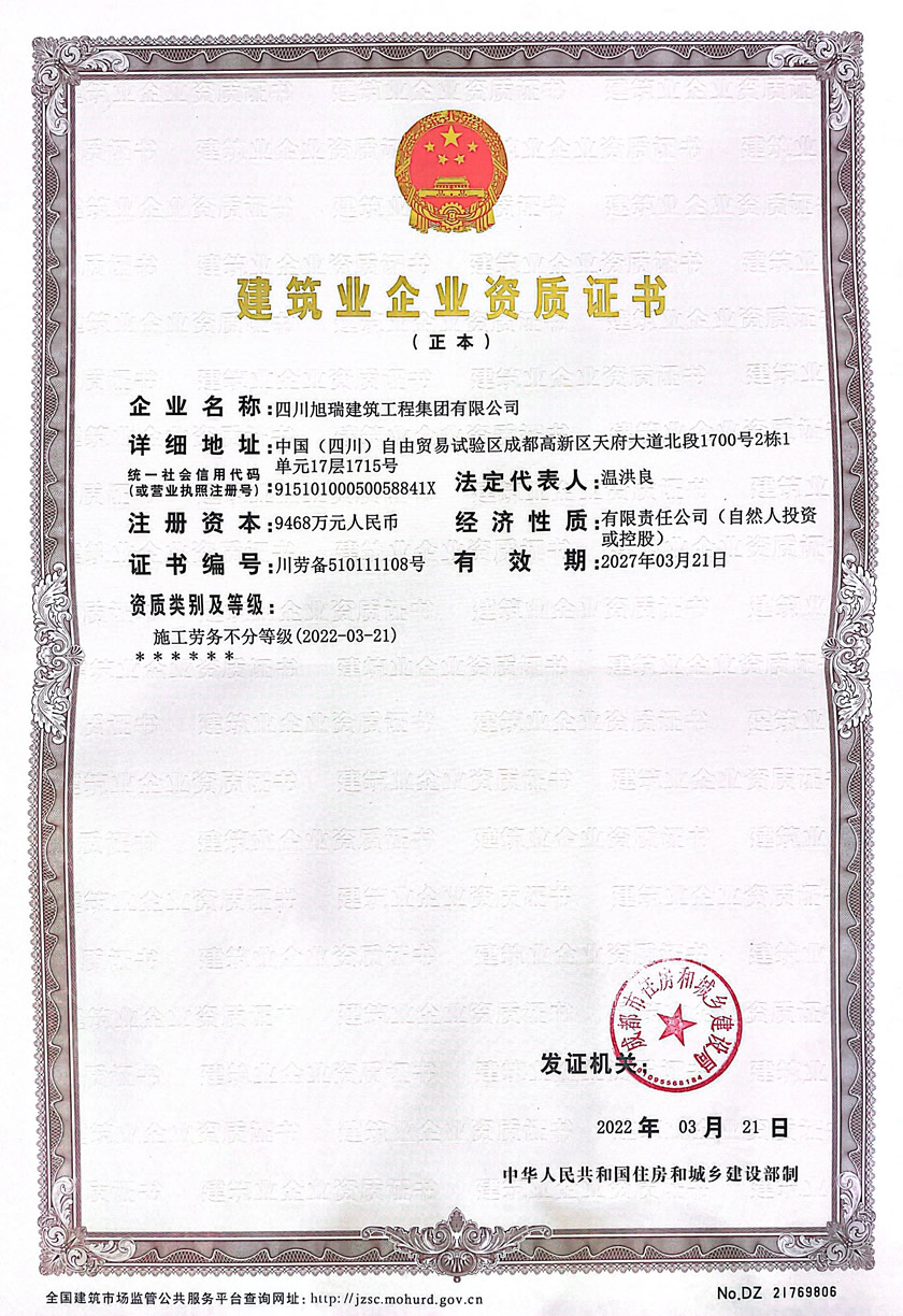 四川旭瑞建筑工程集團有限公司資質(zhì)范圍及等級: