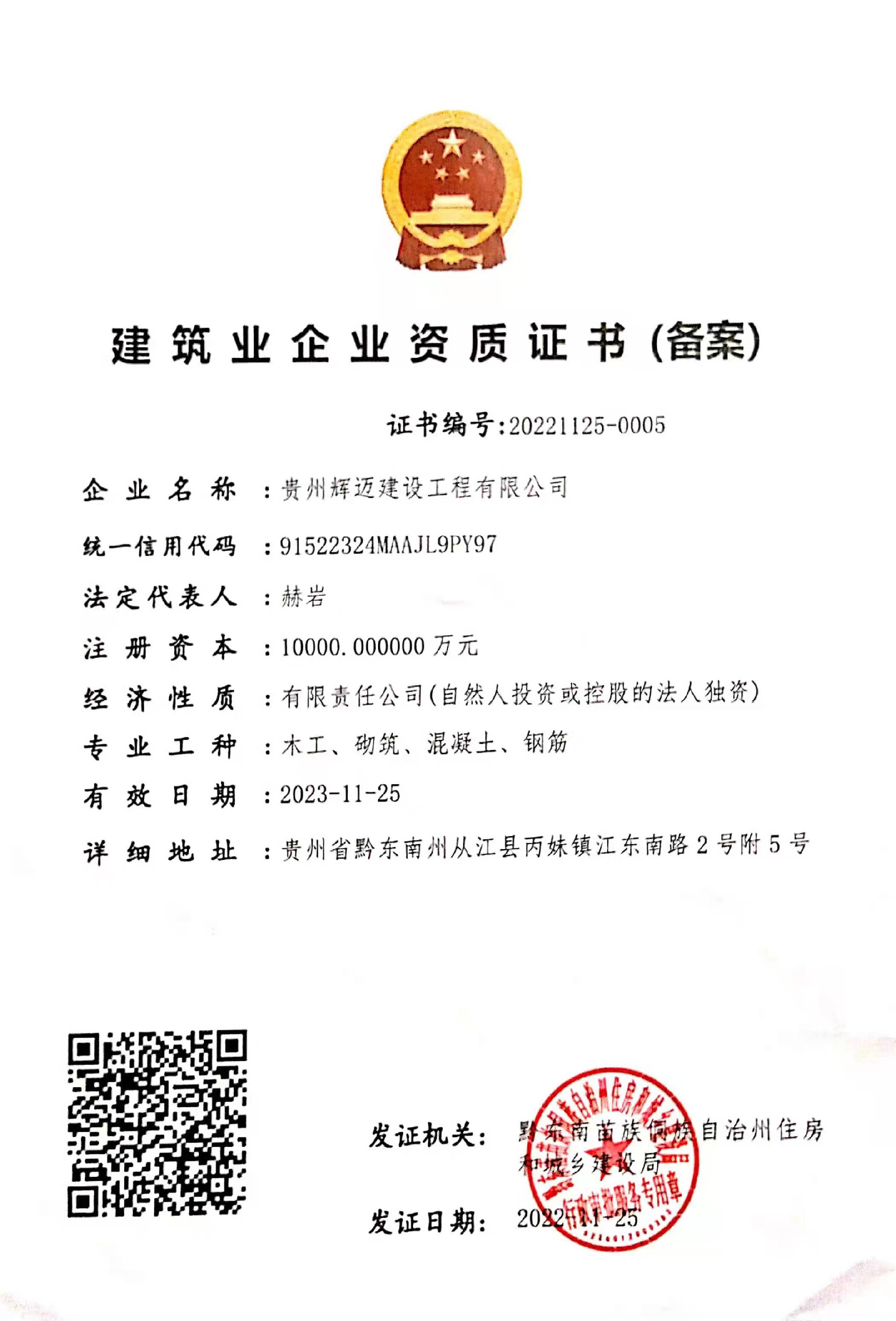貴州輝邁建設工程有限公司備案信息