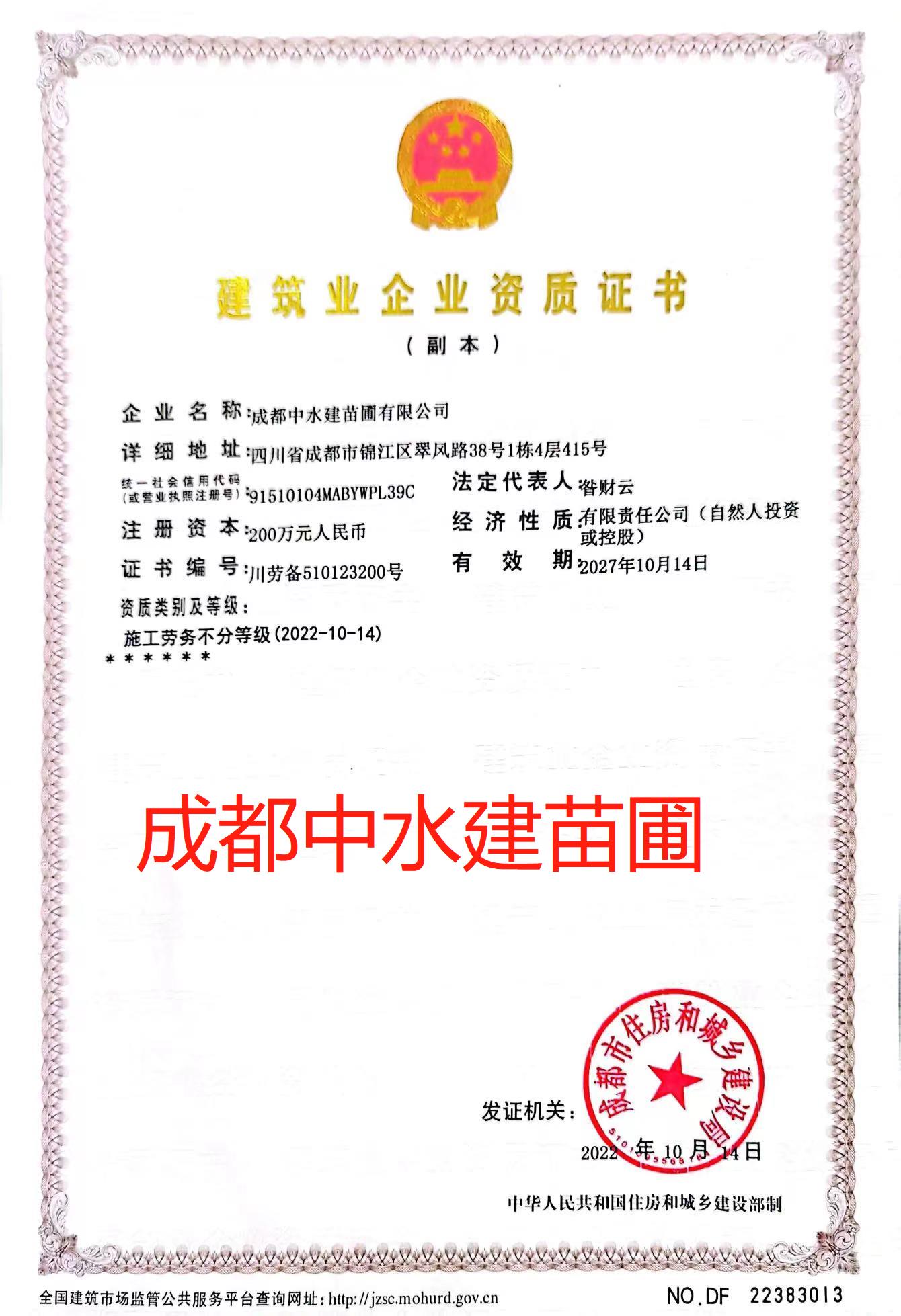 成都中水建安保建設有限公司資質范圍及等級: