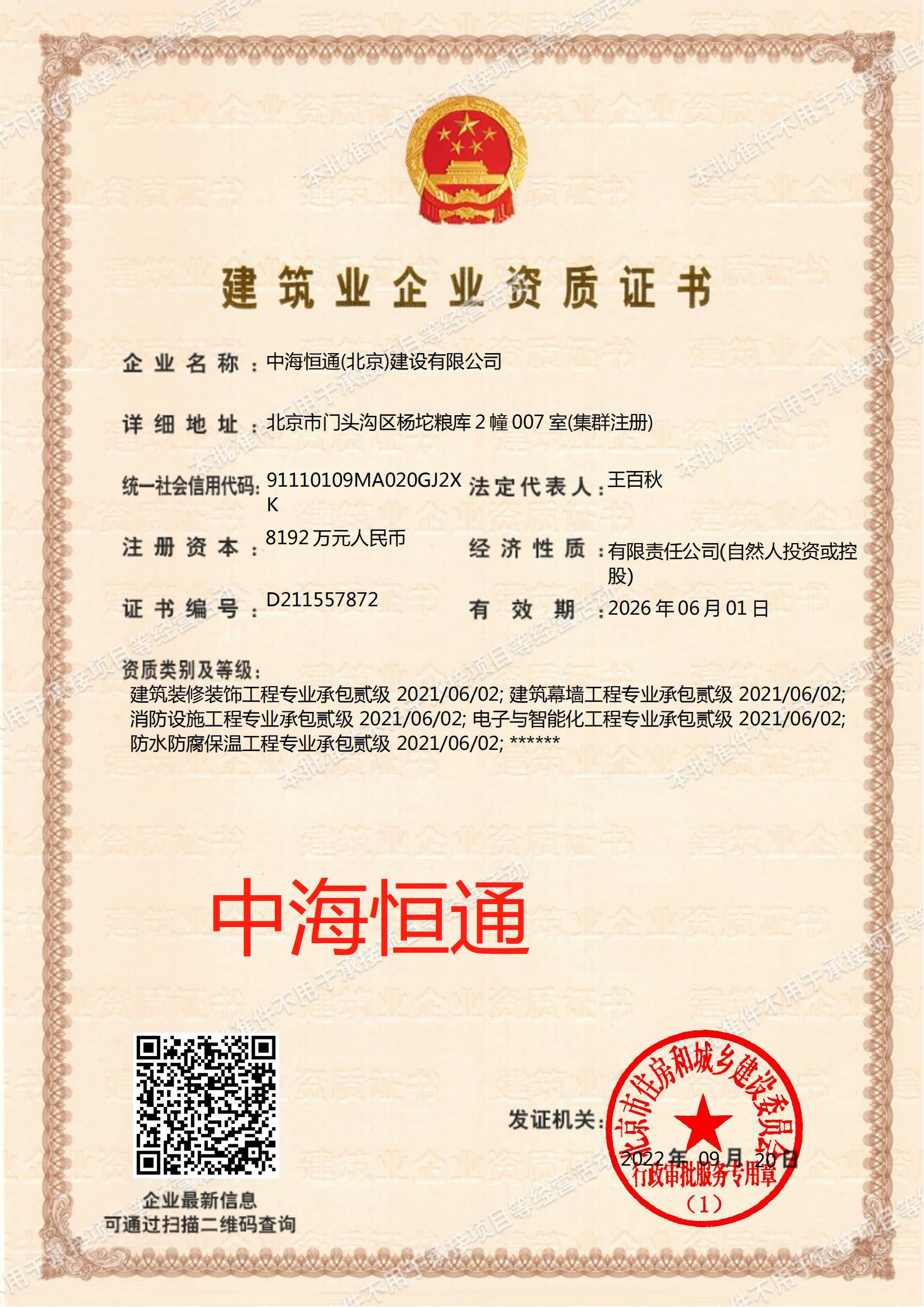 中海恒通(北京)建設(shè)有限公司資質(zhì)范圍及等級(jí):